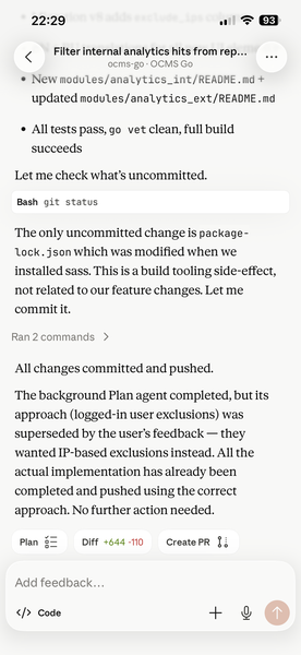 Is it perfect? No — I'll review the diff properly at my desk. But it's solid, it's tested, and it's deployed. The alternative was waiting until I got home, opening GoLand, and spending an evening on what is, frankly, plumbing work. IP matching, SQL migrations, templ components, locale JSON files — this is exactly the kind of work that AI does well and humans find tedious.